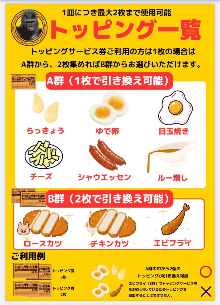 ゴーゴーカレー全店共通のトッピング券をご利用いただけます♪